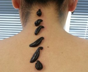 Зачастую, используются не больше 5 пиявок, которые прикладываются к нервно-активным точкам на теле человека. Это необходимо, поскольку вещество, которое пиявки впрыскивают в место укуса, благотворно влияет на нервные окончания. После укуса, пиявки высасывают около 15 мл крови, после чего сами отстают. Если этого не произошло, их снимают с помощью солевого раствора. Место укуса еще некоторое время кровоточит, поэтому на него накладывают марлевую повязку.