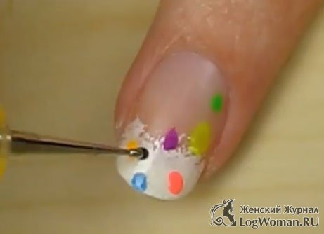 Теперь разными цветами поставьте хаотично точки разного размера.