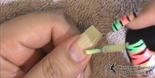 А потом покрасьте ноготь прозрачным лаком укрепителем.