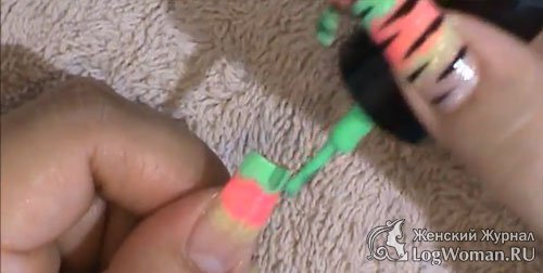 Середину ногтя покрашенного желтым цветом покрасьте оранжевым.