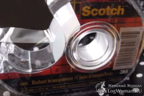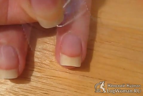 И наклеиваем на ноготь. Хорошо прижмите скотч к ногтю! Так проделайте со всеми ногтями.
