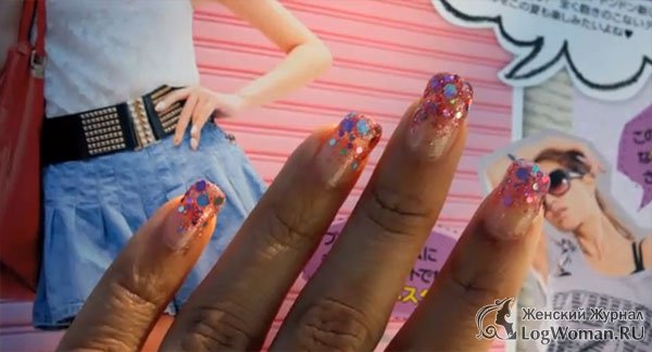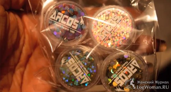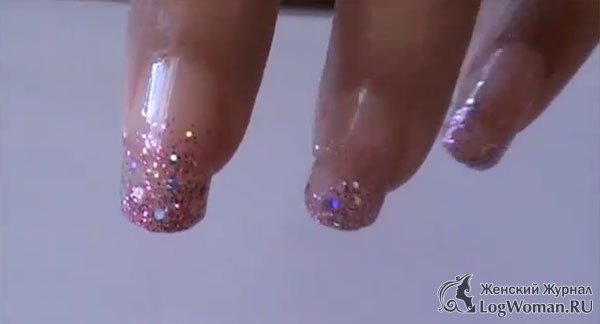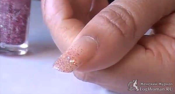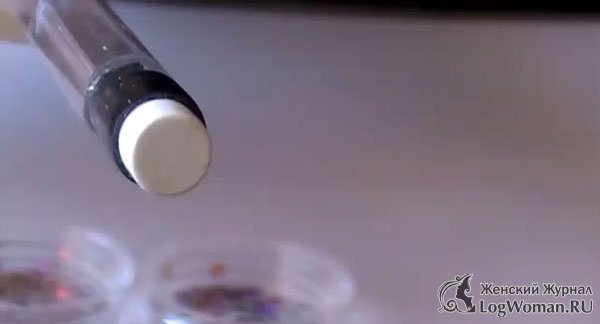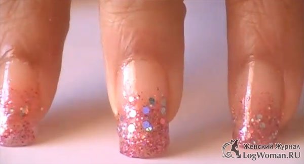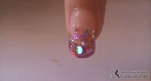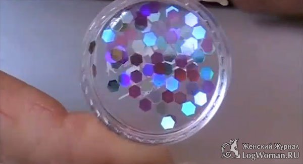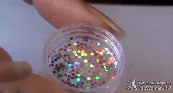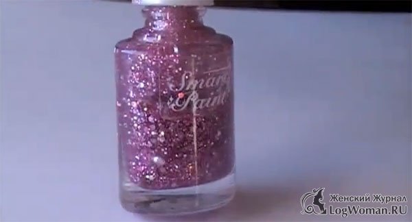 Нам понадобиться лак с крупными и мелкими блестками (я взяла розового цвета, но вы можете взять любой)