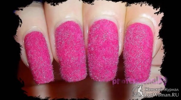 Совсем недавно появилось новое и оригинальное течение для ногтей. А именно вельветовые ногти. Суть в том что в наборе идет специальный лак нужного вам цвета и к нему прилагается небольшая коробочка с напылением, которая и создает нужный эффект.