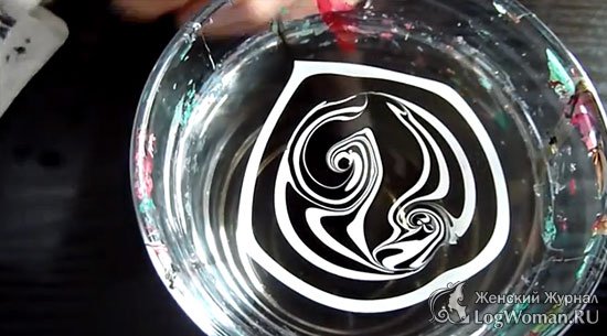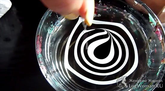 Затем добавляем еще пару капель черного и белого лака, для того что бы круги стали тоньше.