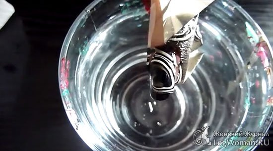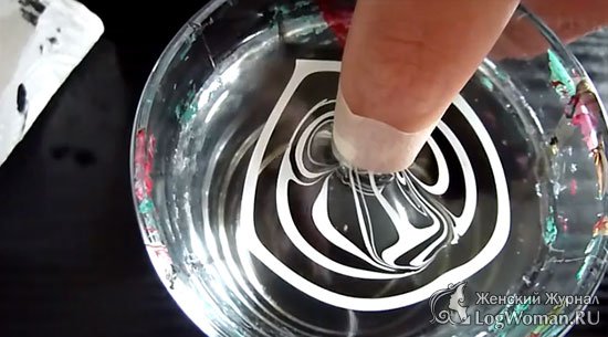 Аккуратно опускаем ноготь в приготовленный рисунок.