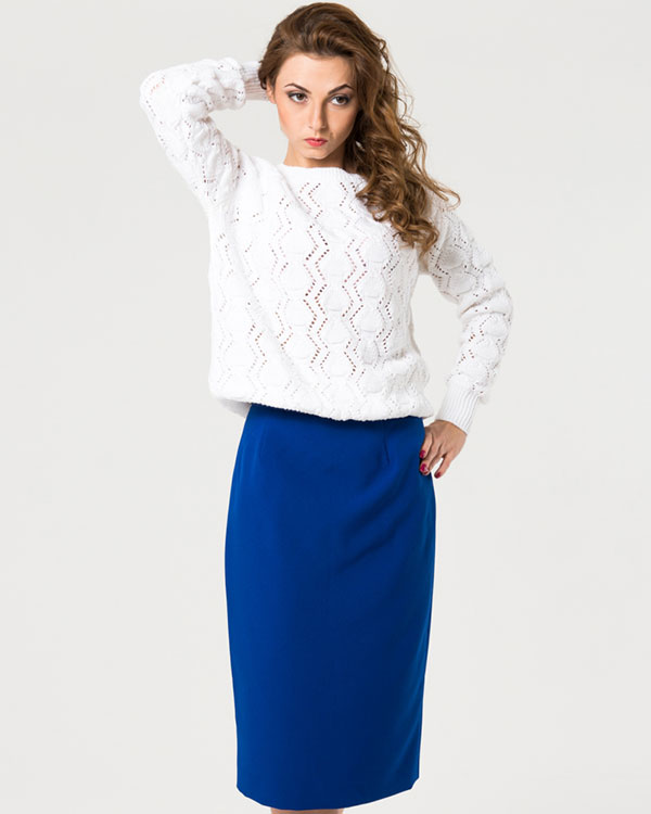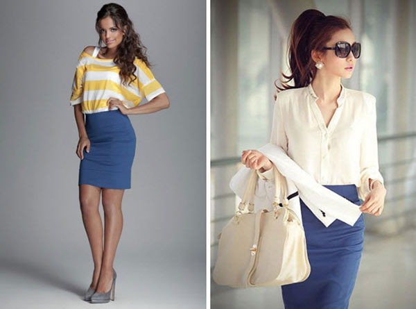 В отличие от классической черной юбки, модель синего цвета не останется незамеченной. При этом офисному дресс-коду ничто не угрожает — синяя юбка покроя «карандаш» выглядит не менее строго, чем черная прямого фасона.