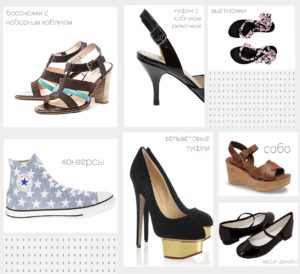 Туфли, босоножки, кроссовки, ботинки и сапожки, такое большое разнообразие обуви. Столько же много разнообразия обуви. Каждая женщина должна иметь в своем гардеробе несколько вариантов обуви. Причем желательно не по одной паре. Обувь должна быть повседневной и на выход.