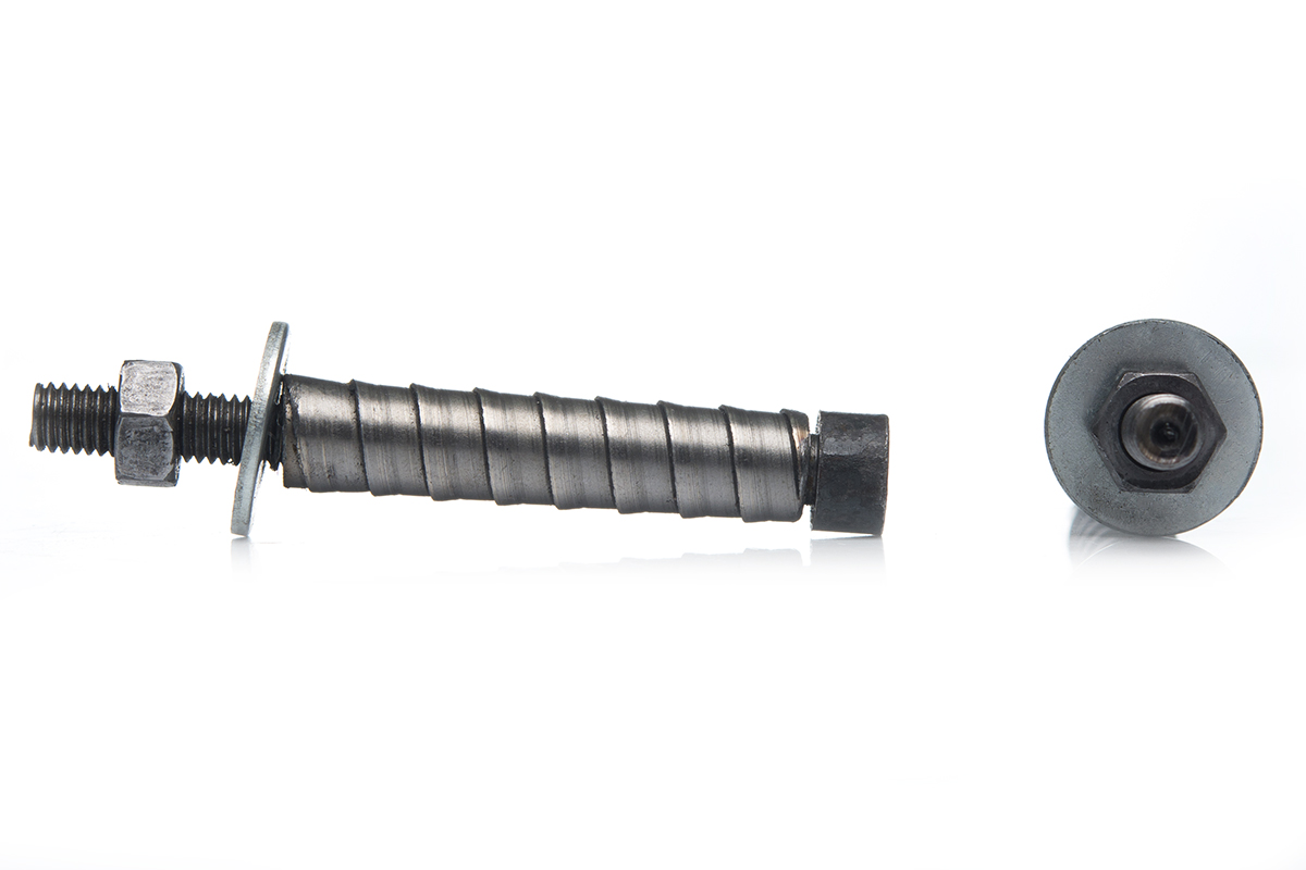 Деталь, выполняющая функцию заклинивания элемента БСР внешне напоминает спираль, сделанную из особой ленты по нормам ГОСТа 503. Наружное покрытие распорных самоанкерующихся болтов — химическое оксидирование.