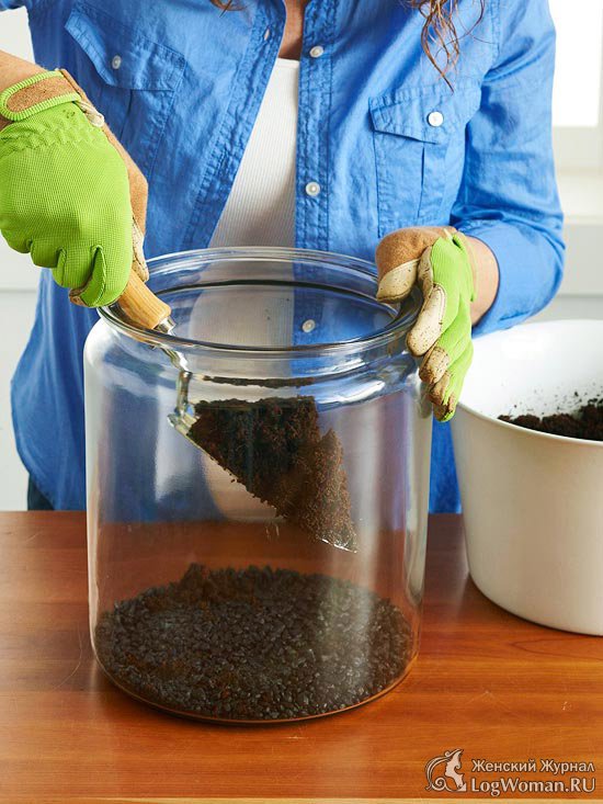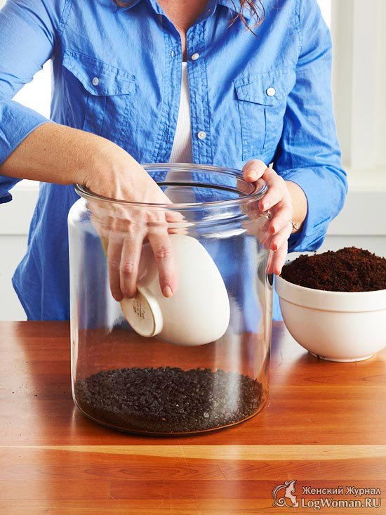 Возьмите емкость, которую вы выбрали для террариума и насыпьте в нее примерно 3-6 см древесного угля.