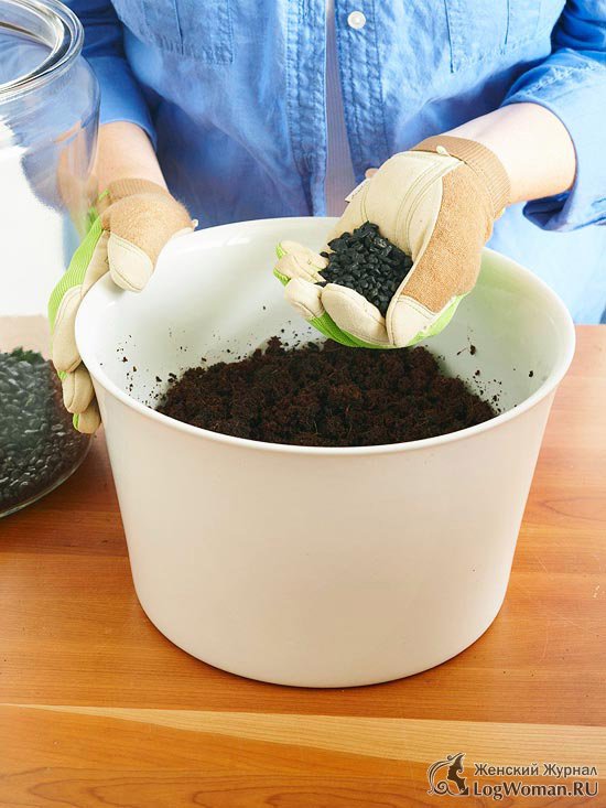 В отдельную емкость насыпьте землю и смешайте и небольшим количеством древесного угля. Смешивать можно как рукой, так и мастерком.