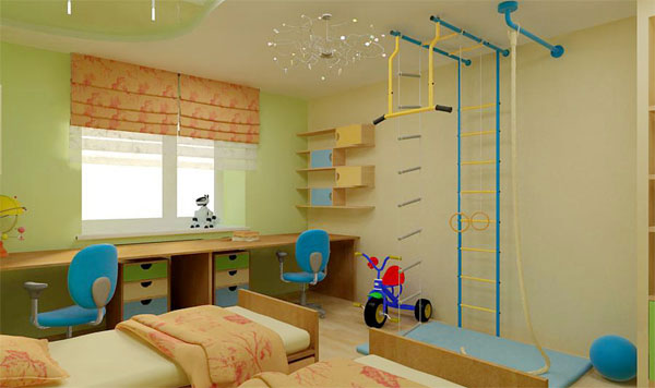 - Но самое важное, позаботьтесь о безопасности комнаты. Установите розетки с заглушками, застелите ковролином скользкий пол, подберите мебель без острых углов и положите маты под спортивной стеной, так вы защитите своего ребенка от травм, и будете спокойны, когда он будет оставаться без вашего присмотра в своей комнате.
