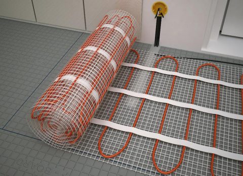 Вторая технология — система теплого пола с нагревательными матами на вспененной основе. Ее также монтируют в стяжку, и такой пол не отличается от пола с нагревательным кабелем. В отличие от него маты обладают хорошей гибкостью, что позволяет их укладывать на неровные поверхности и в труднодоступных местах. С помощью этой технологии можно обогревать отдельные зоны помещения.