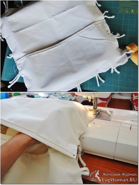 Теперь накройте второй половиной ткани для наволочки (лицевой стороной вниз!). Закалите булавками и еще раз прострочите все по периметру.