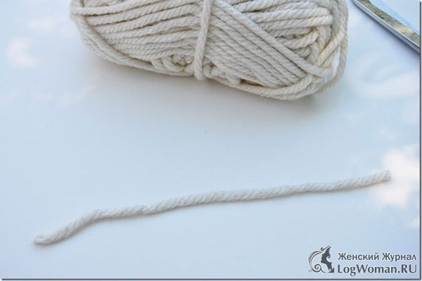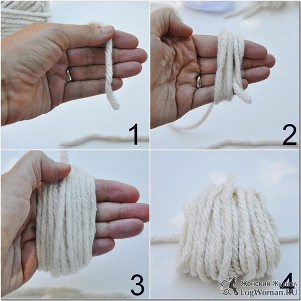 Теперь возьмите нитки и обмотайте их на вашу ладонь. После того когда вы решите, что наматывать их уже достаточно обрежьте конец.