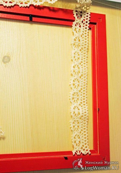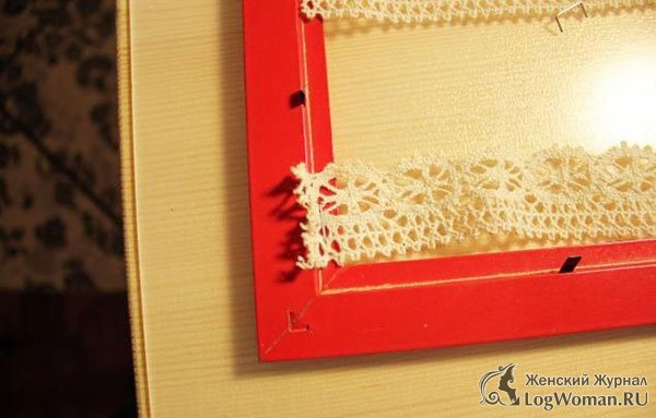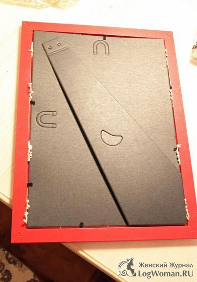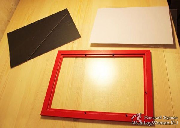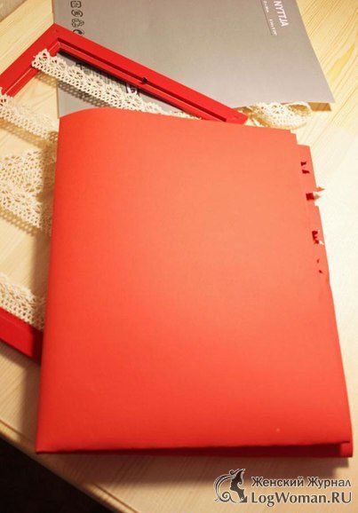 Теперь возьмите картонку, которая закрывает рамку и обверните ее красной цветной бумагой