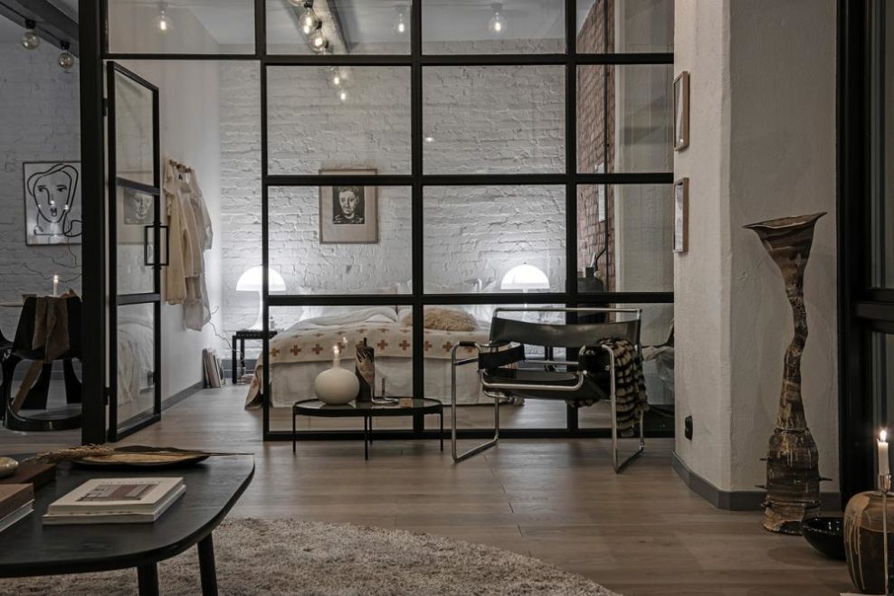 Принцип создания перегородок в стеле лофт, вне зависимости от применяемого и используемого материала, имеет схожие моменты. Перегородки из металлических, стеклянных либо деревянных материалов, могут быть, окрашены, а затем поверхностям придают небрежный внешний вид, например, в виде искусственно нанесенных царапин и прочих способов.