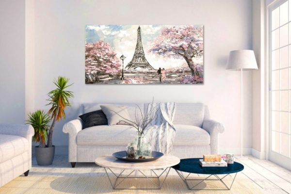 В первую очередь картина должна сочетаться с интерьером как по смыслу, так и по цветовой гамме. Например, в современный интерьер с геометрической темой совершенно не впишется картина с цветами, даже если ее цвет будет сочетаться с цветом мебели. В этом случае лучше отдать предпочтение картине в стиле абстракционизм. Для урбанистического интерьера подойдет картина с городской тематикой. Натюрморты хорошо впишутся в романтические интерьеры. Фактура материала тоже важна. Нежную спальню отлично дополнит акварель, а живописная морская тематика прекрасно подойдет для комнат с деревянными панелями.