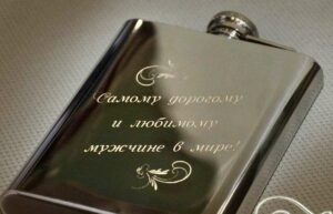 В качестве универсального подарка можно рассмотреть фляжку с именной гравировкой. Персональная надпись продемонстрирует статус человека и его значимость для дарителя. Гравировка выполняется по специальной технологии, которая гарантирует ее долговечность. Фляжки бывают разного объема, цвета, формы и фактуры. Бытует мнение, что комплекция одаряемого имеет значение при выборе фляги для алкоголя (чем крупнее человек, тем больший объем стоит предпочесть). В любом случае, презент нужно выбирать индивидуально.