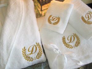 Модель со сложным рисунком. Можно сэкономить и купить халат с шелкографией. Однако такой рисунок в скором времени потеряет четкость и просто выцветет. Вышивка сохраняет форму на протяжении долгих лет.