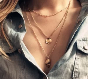 Очень удобным решением будет сочетание цепочек, имеющих различную длину, толщину и число украшений, находящихся на цепочке, такое решение не является новинкой сезона. Ношение украшений таким способом − классика. Нося таким способ украшения, есть возможность выбрать материал и длину нити или цепочки и кулон, который будет хорошо подходить к вашему образу. Пусть вашу фантазию ничего не останавливает!